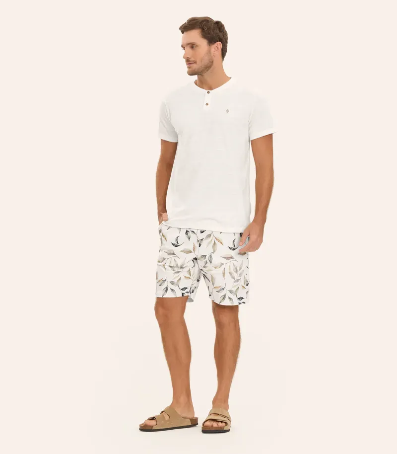 Bermuda Masculina Diametro, confeccionada em sarja com estampa digital exclusiva. Apresenta cós aplicado com elástico embutido para ajuste confortável, bolsos internos com abertura acabada em bainha e limpeza primorosa, além de bolsos traseiros com acabamento em bainha. Barra com bainha lenço garante caimento elegante. Peça perfeita para compor looks casuais e frescos, adicionando um toque de sofisticação discreta.