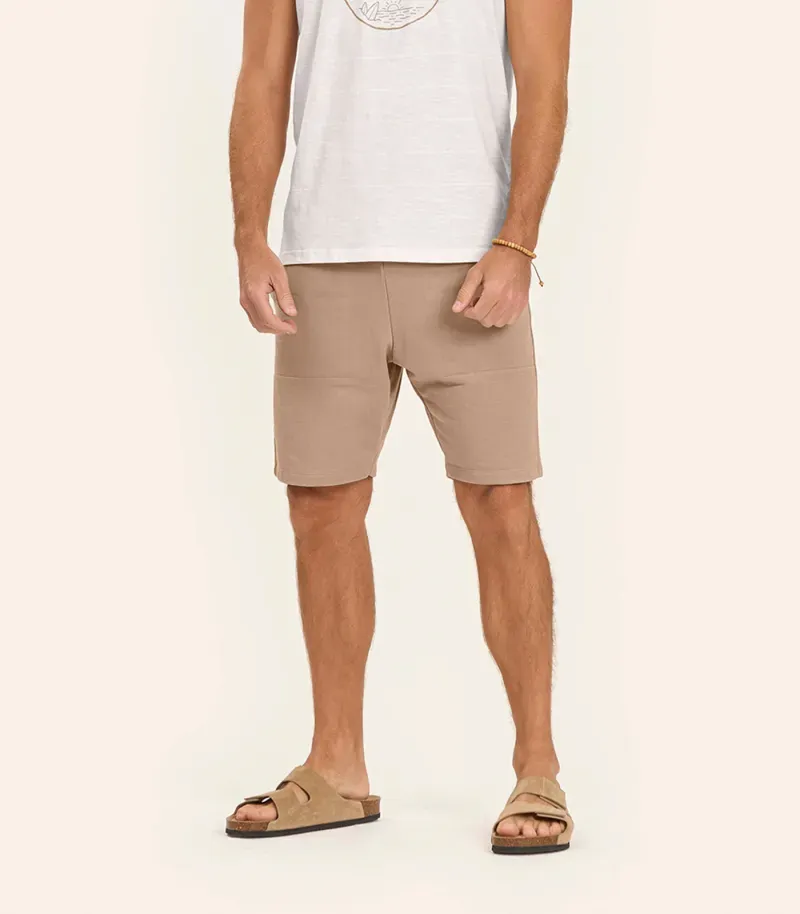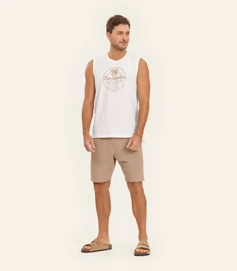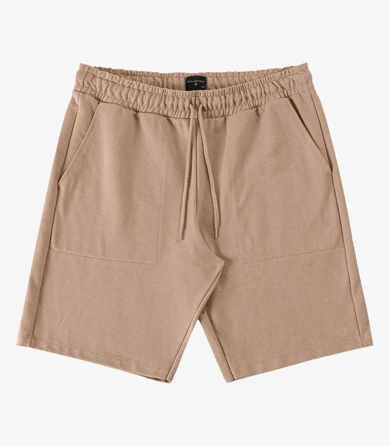 Bermuda Masculina Diametro, confeccionada em moletom sarjado de caimento impecável. Modelo de base lisa com cós no próprio tecido, elástico interno rebatido e dois caseados verticais, além de cadarço funcional com ponteira em acetato para ajuste preciso. Possui bolsos faca internos com acabamento em bainha e barra com bainha dupla para melhor caimento. Peça ideal para compor looks casuais com elegância discreta, unindo conforto, estilo e sofisticação sutil.