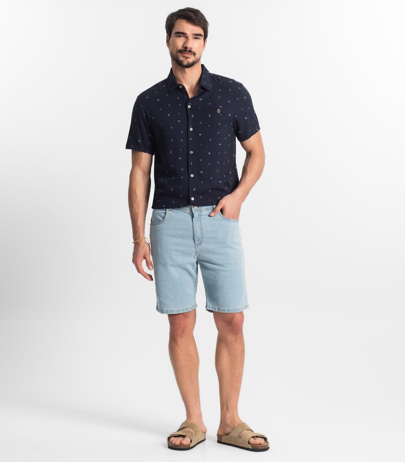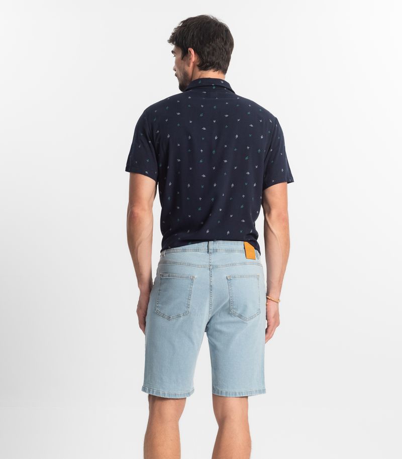 A Bermuda Masculina Diâmetro confeccionada em Jeans Confort, oferece um caimento estruturado e flexível, garantindo liberdade de movimento. O design conta com cós anatômico e passantes, além de caseado com botão funcional para um ajuste seguro. A braguilha com zíper proporciona praticidade no vestir. Os bolsos frontais com pesponto agregam detalhes sofisticados, enquanto os bolsos traseiros e o recorte pala com pesponto reforçam o acabamento e a durabilidade da peça.