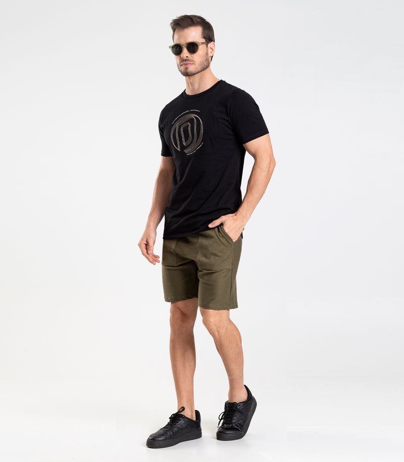 Bermuda Masculina Diametro, confeccionada em moletinho gorgurinho de caimento leve e sofisticado. Modelo de base lisa,