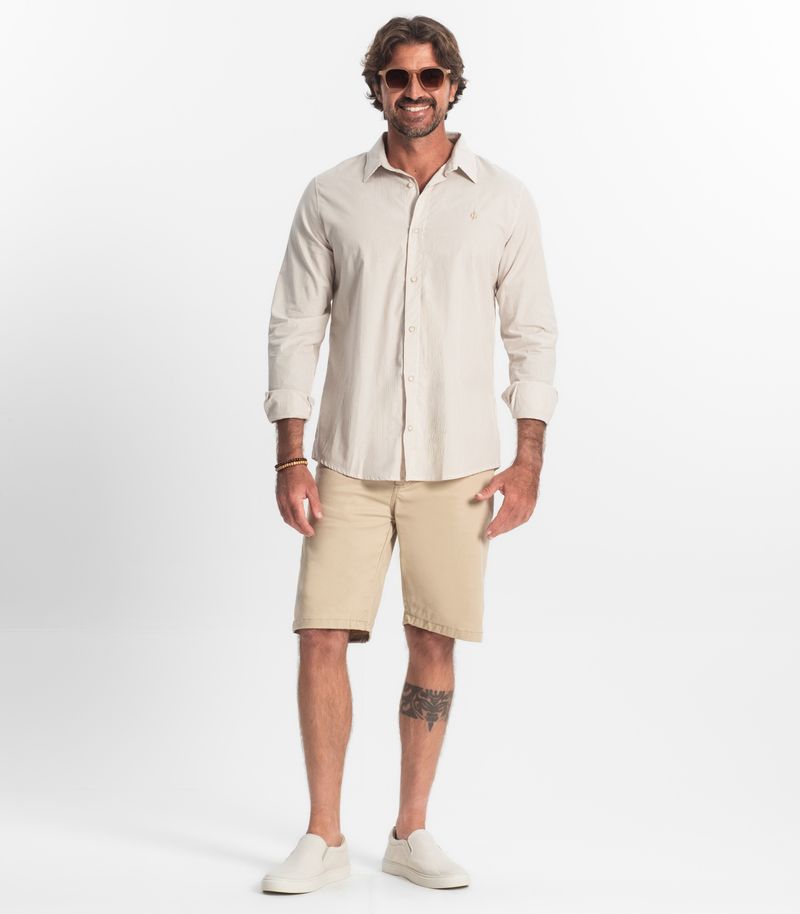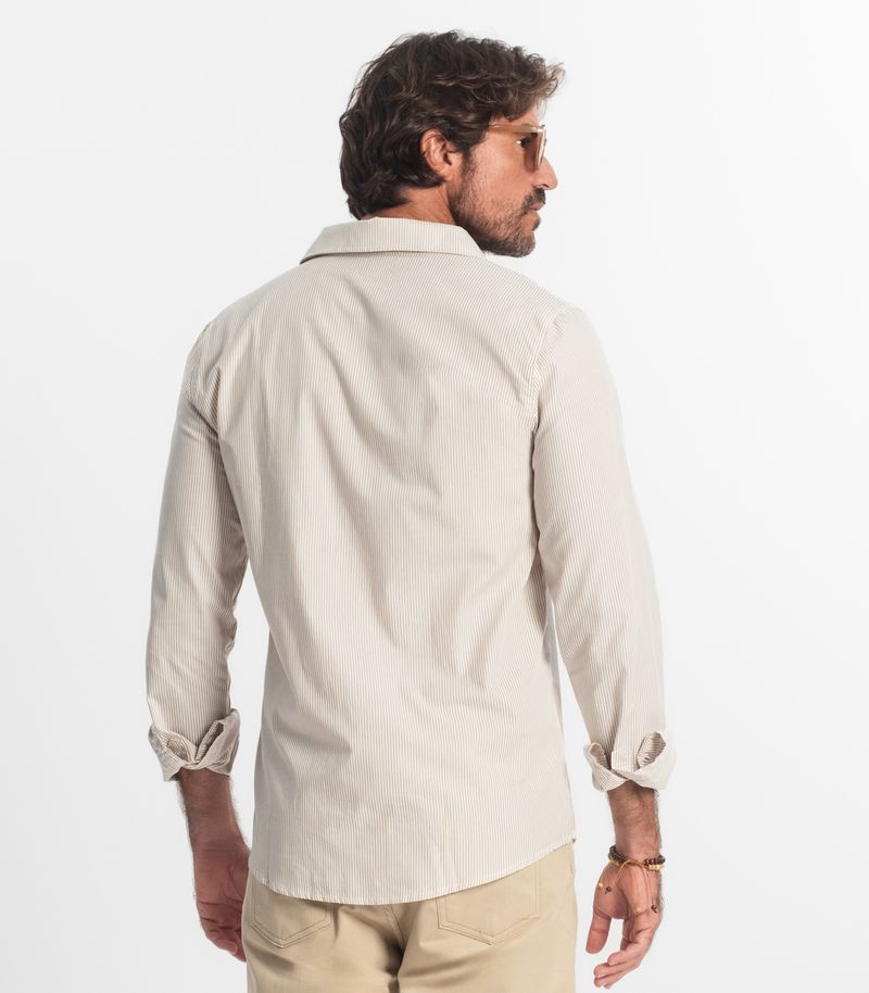 A Camisa Manga Longa Diâmetro confeccionada em Popeline Listrado, oferece um toque suave e um caimento impecável. A gola estruturada com entretela e acabamento em pesponto garante um visual refinado e durabilidade. As cavas com pesponto proporcionam um acabamento reforçado, enquanto as mangas contam com caseado, fechamento por botões e carcela com botão extra, permitindo dobrá-las com praticidade. A abertura frontal possui caseado e fechamento por botões, unindo funcionalidade e estilo.