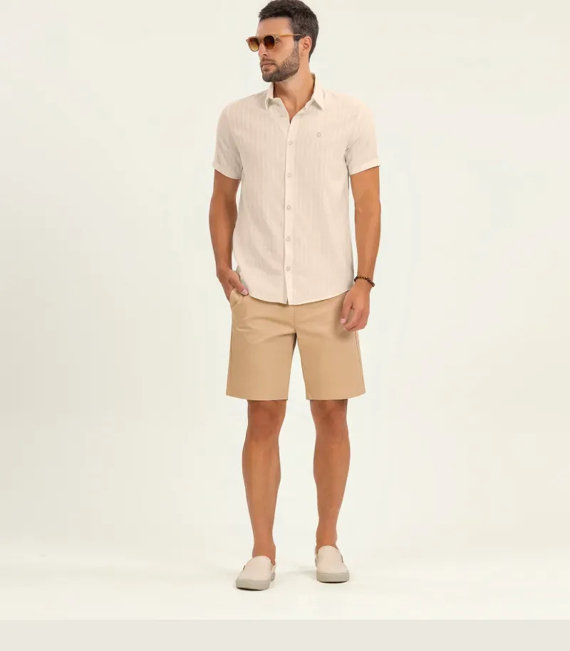 MasculinoCamisa Masculina Manga Curta Diametro Bege