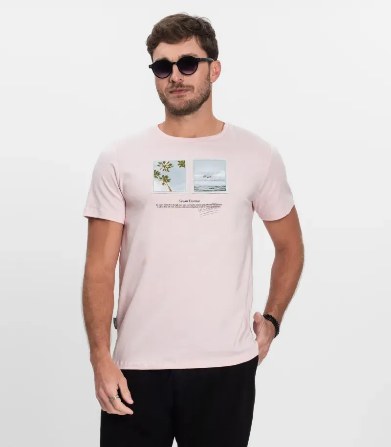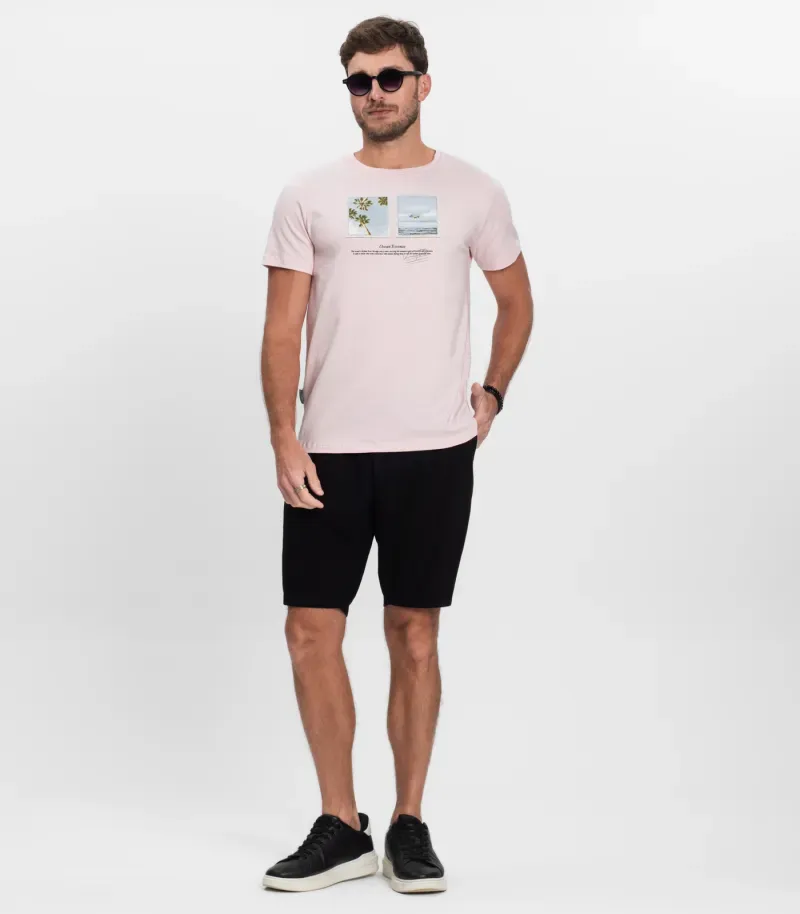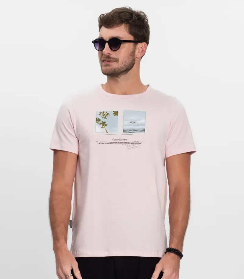 Camiseta Masculina Cotton Leve Diametro Rosa
