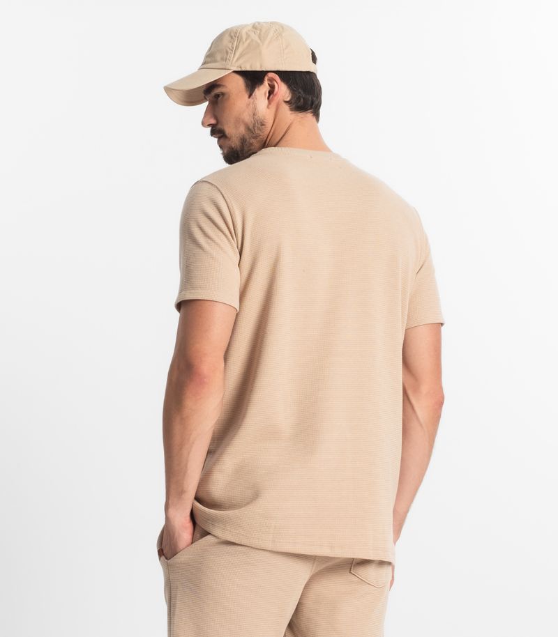 A Camiseta Masculina Diâmetro é confeccionada em Malhão Maquinetado, proporcionando uma textura diferenciada e um toque macio ao vestir. O modelo conta com decote talhado com reforço interno, garantindo mais durabilidade e um acabamento impecável. As cavas com pesponto reforçam a estrutura da peça, enquanto as mangas curtas oferecem conforto e versatilidade. O destaque fica por conta da estampa localizada frontal, que adiciona estilo e personalidade ao visual. Ideal para compor looks casuais mod