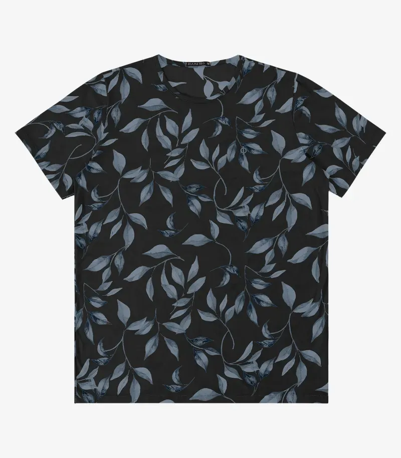 Camiseta Masculina Diametro, confeccionada em meia malha de toque macio. Apresenta estampa digital moderna, decote redondo com friso, mangas com bainha dupla e barra com bainha no comprimento para caimento impecável. Nas costas, etiqueta interna discreta. Peça ideal para compor looks casuais com refinada elegância, unindo conforto e sofisticação em qualquer ocasião.