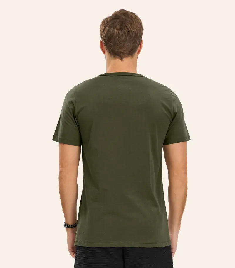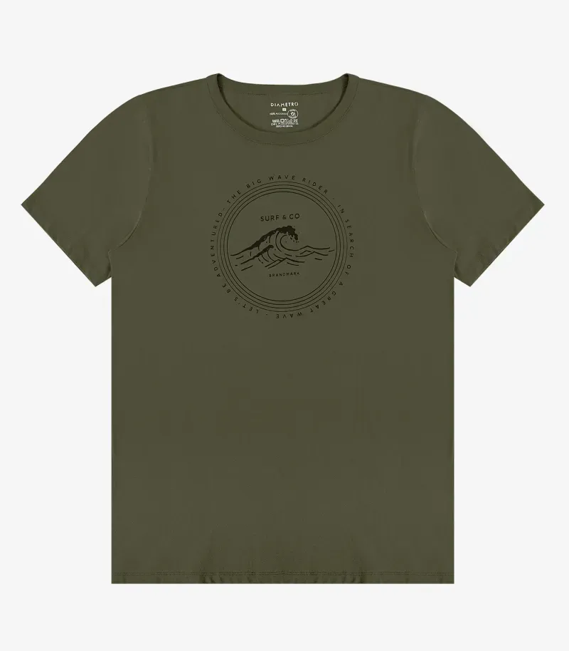 Camiseta Masculina Diâmetro, confeccionada em meia malha de toque suave. Modelo de base lisa com estampa central localizada e detalhe em tampografia. Possui decote redondo em friso e mangas finalizadas em bainha, assim como a barra, garantindo caimento impecável. Perfeita para compor looks frescos, elegantes e cheios de charme, aliando conforto e sofisticação em qualquer ocasião.