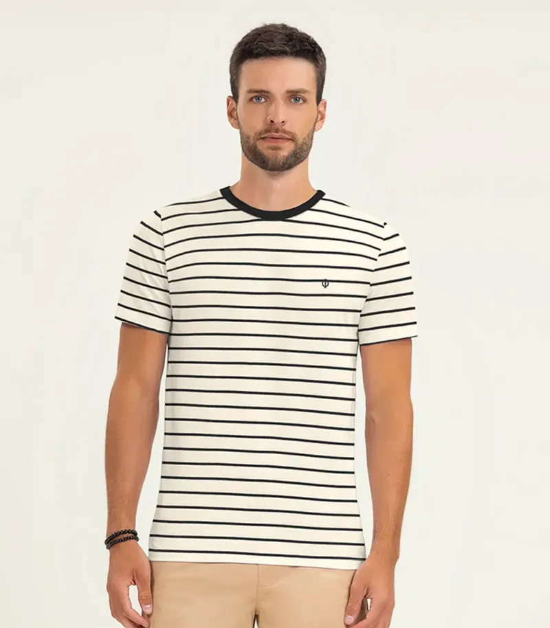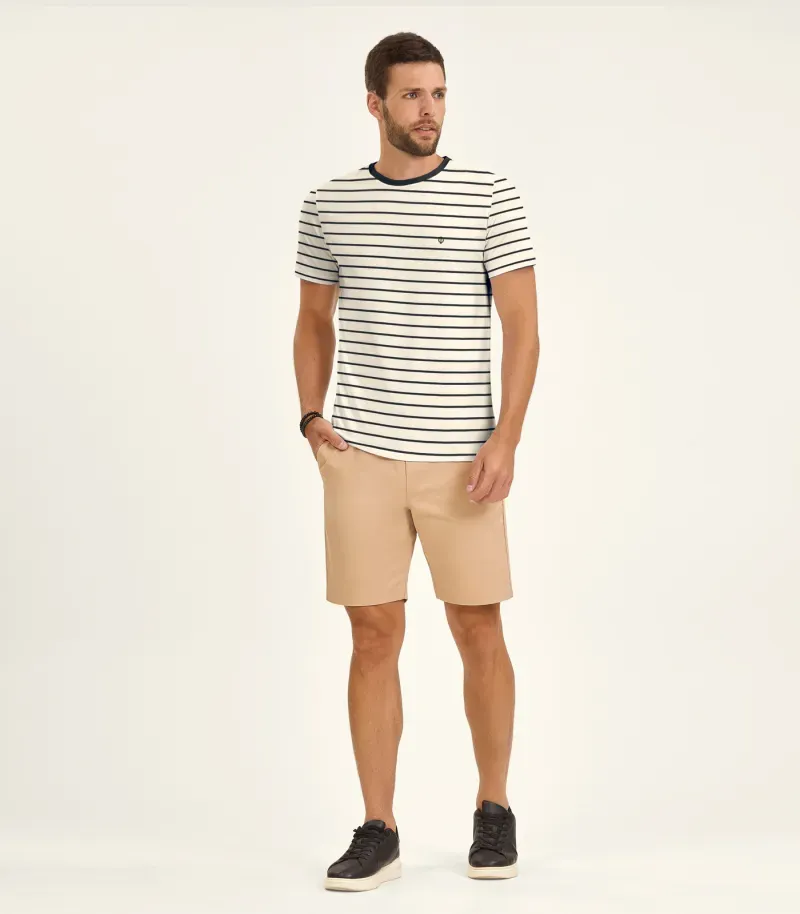 A Camiseta Masculina Diametro é confeccionada em Cotton Listrado, trazendo conforto e estilo para o dia a dia. Possui decote com acabamento em friso reforçado, que garante maior durabilidade. As mangas têm bainha com costura dupla, proporcionando um visual mais limpo e reforçado. Conta também com bordado no peito e barra com bainha reforçada e acabamento com duas agulhas, garantindo um caimento impecável e um toque de qualidade em cada detalhe.