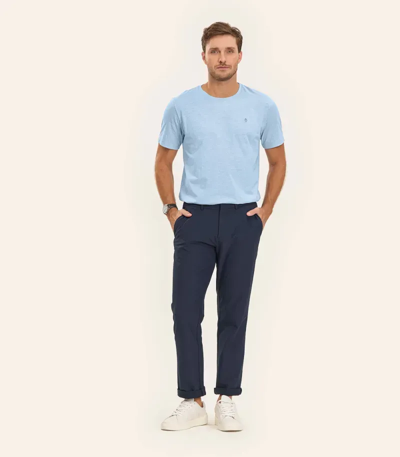A Camiseta Masculina Diâmetro é confeccionada em Meia Malha Maquinetada, proporcionando um toque macio e uma textura diferenciada ao visual. O modelo conta com decote em friso com reforço interno, garantindo mais durabilidade e um acabamento estruturado. O destaque fica por conta do bordado com a logo da marca, que adiciona um toque de autenticidade e sofisticação. Perfeita para compor looks casuais com conforto e estilo.