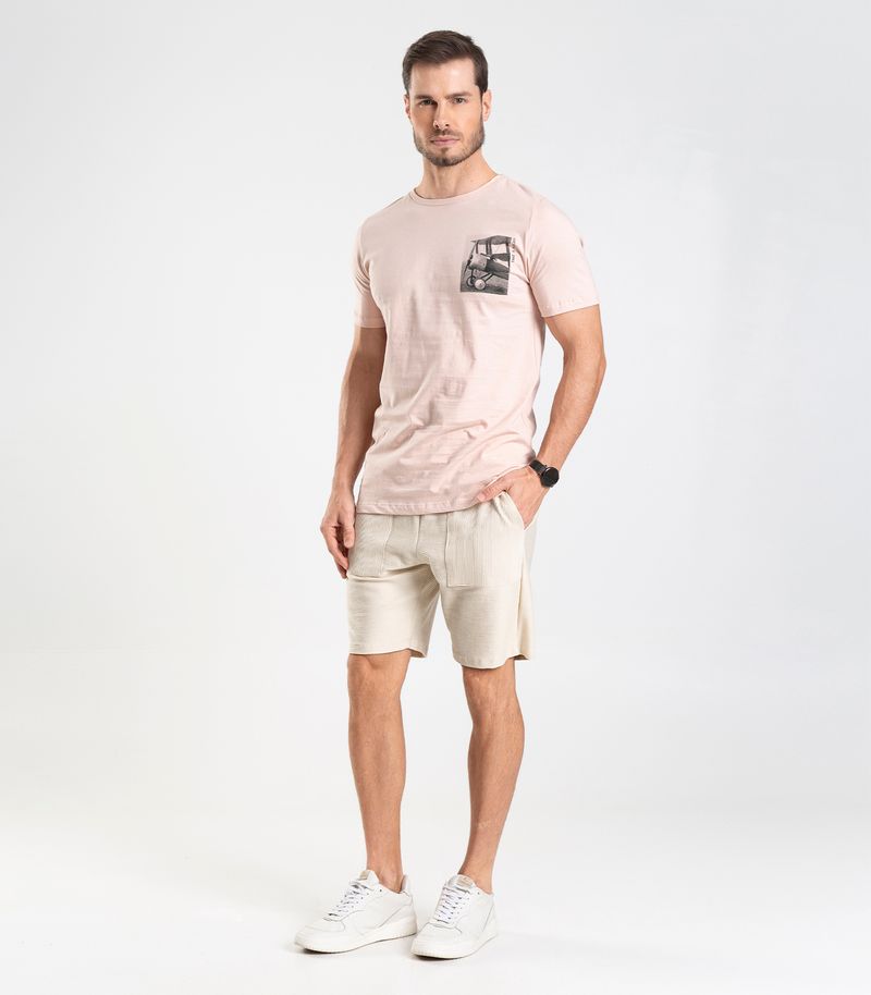 Camisa Masculina Diametro, confeccionada em meia malha de caimento leve e sofisticado. Modelo de base lisa,