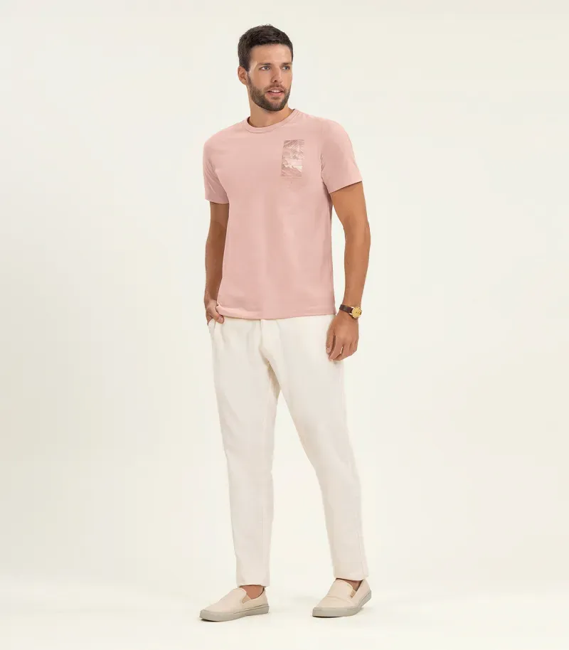 Camiseta Plus Size Masculina Meia Malha Diametro Rosa