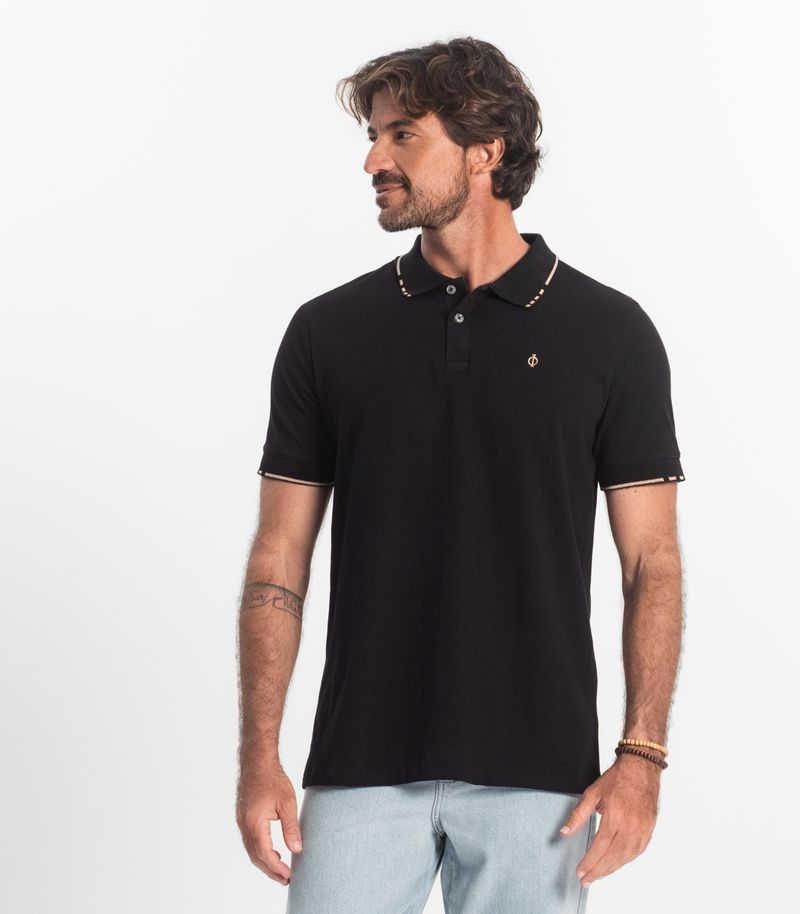 MasculinoPolo Masculina Malha Favo Diametro Preto