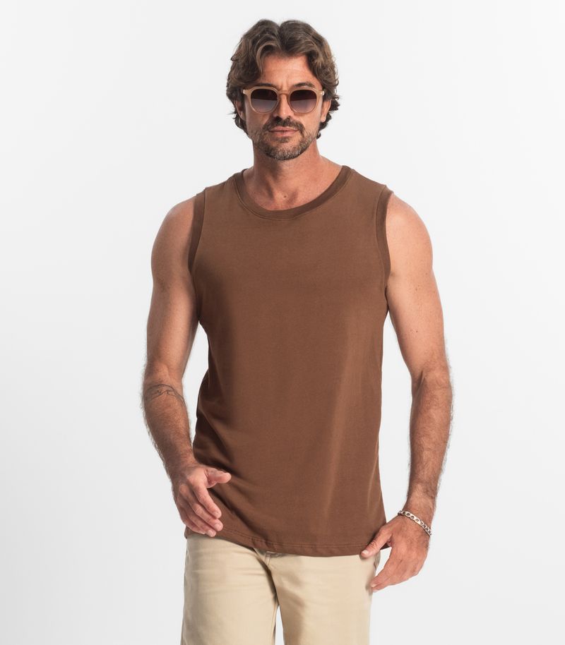 Regata Masculina Básico Meia Malha Diametro Marrom