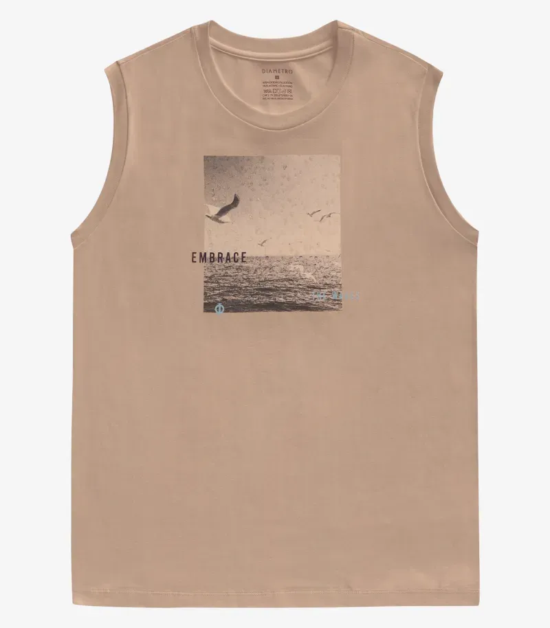 A Regata Masculina Diametro é confeccionada em meia malha, oferecendo leveza e conforto para os dias mais quentes. Possui estampa localizada na parte frontal, com visual moderno e cheio de estilo. O acabamento do decote e das cavas é feito com friso aplicado, garantindo melhor caimento. A barra tem acabamento com bainha reforçada e costura dupla, proporcionando maior durabilidade. Ideal para compor looks casuais e descontraídos.